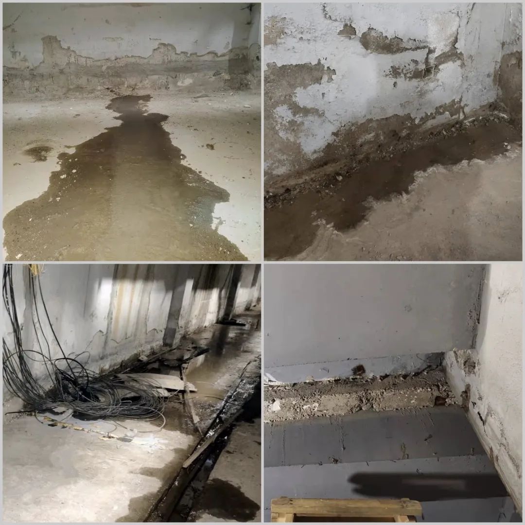 德美斯防水堵漏工程有限公司相关技术人员,针对该地下车库脱落、裂缝及渗水等问题进行了实地勘察。发现该车库2000余平的区域存在不同位置及程度的裂缝、渗漏水情况,涉及地下室底板、顶板、剪力墙及排水沟等不同位置,防水维修迫在眉睫。